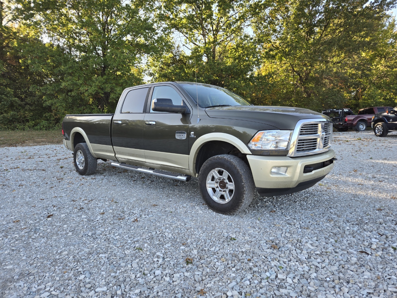 2011 Ram 2500 Longhorn 6.7 Cummins 4x4. Has every option for the year, sunroof, Nav, rear DVD, Alpine sound, heated/cooled seats, heated wheel, heated rear seats, power everything, Sagebrush two tone paint etc. Truck is all stock has not been tuned or deleted, has a spray in bed liner, B&W gooseneck, tonneau cover, tires are 70%. Truck runs and drives excellent, no warning lights, no issues, steering is tight, trans shifts perfect. Interior is about as clean as it gets with a 2011 model, exterior is rust free, Texas truck, no accidents, has a couple dings pictured. Inner and outer rockers are clean, no rust at all. Clean and clear title.